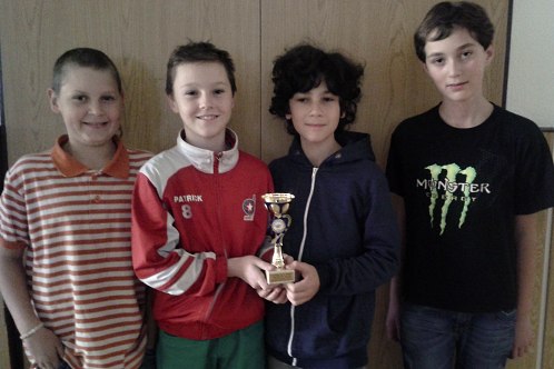 Ani prázdninová povánoční sobota 3. 1. 2015 neodradila čtyři chlapce naší školy, kteří odjeli ráno do Náměště nad Oslavou, aby reprezentovali školu v šachovém turnaji " O perníkovou chaloupku". V turnaji se hrálo 7 kol a nejlépe si vedl Valentýn Vorobets ze 7. tř. se ziskem 4b. Každý z chlapců si odvezl zaslouženou odměnu. Na snímku je společně s chlapci i náš Tomáš Zelený, který hrál za třebíčský šachový klub a získal 4,5 b.